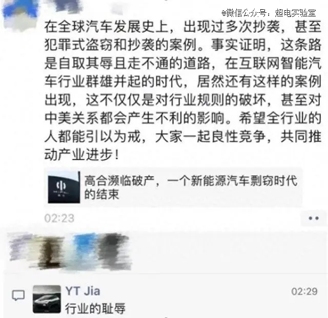 根據(jù)網(wǎng)絡(luò)上流傳的圖片,有人在朋友圈里分享并評論了一篇關(guān)于高合停工挺慘的文章,并評論道: