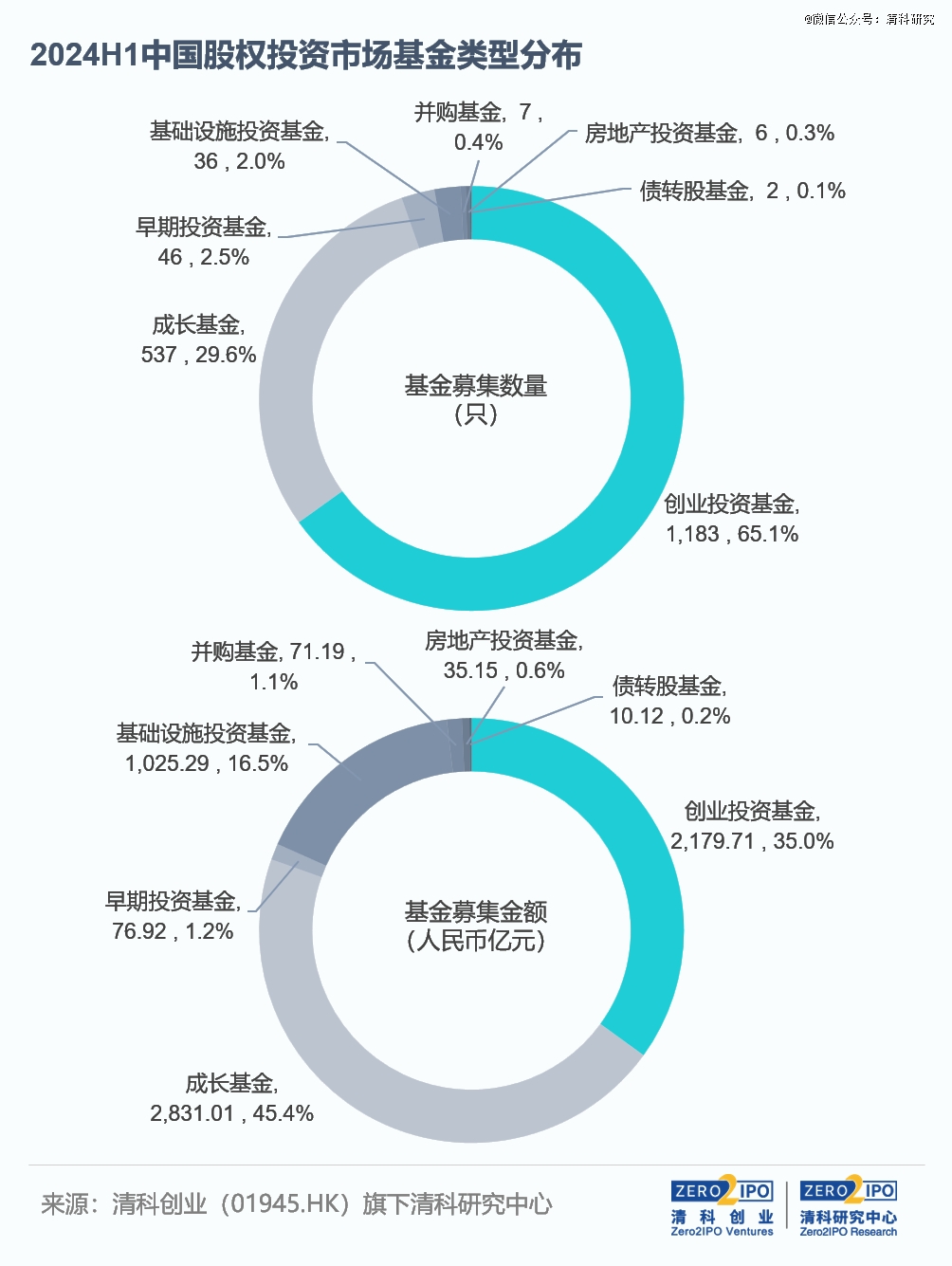 2024年上半年,創(chuàng)業(yè)投資基金數(shù)量持續(xù)*,占比維持在60%以上。據(jù)統(tǒng)計,共有1,183只創(chuàng)業(yè)投資基金完成新一輪募集,數(shù)量同比下降50.1%;募資規(guī)模為2,179.71億元人民幣,占比35.0%,相比去年同期下降了1.4pct。537只成長基金的募資規(guī)模合計達到2,831.01億元人民幣,數(shù)量和金額占全市場的比重分別較2023年上半年提高了0.2pct、2.9pct。