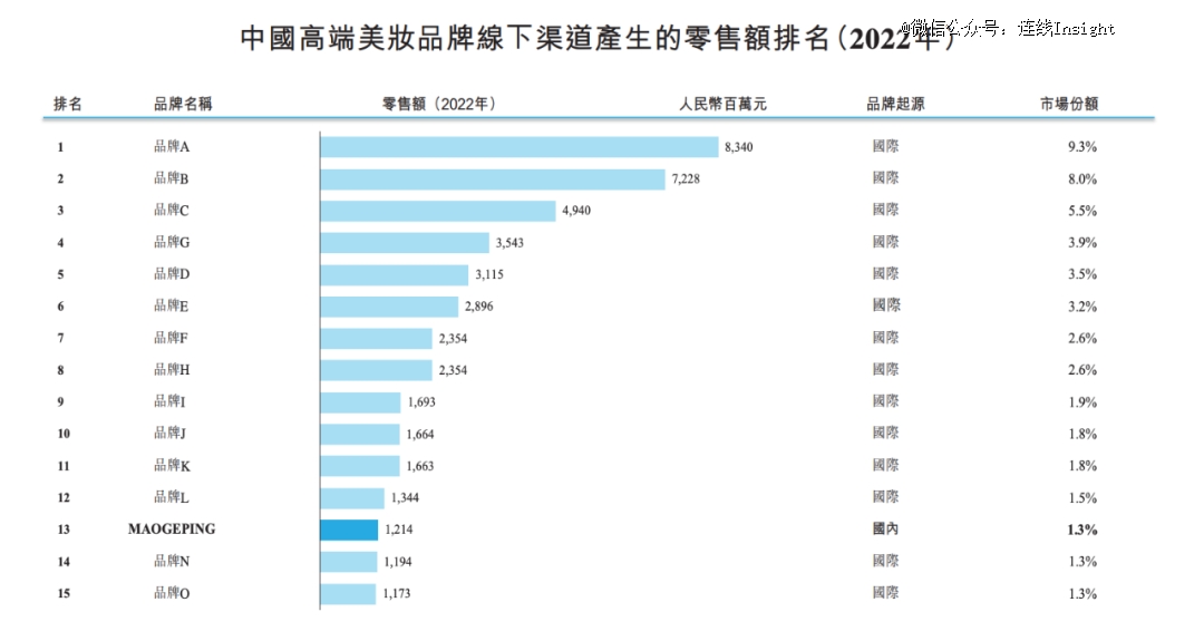 在招股書(shū)中,毛戈平引用弗若斯特沙利文的數(shù)據(jù)稱(chēng),其是中國(guó)市場(chǎng)十大高端美妝集團(tuán)中*一家中國(guó)公司,按2022年的零售額排名第八,旗下MAOGEPING是中國(guó)市場(chǎng)十五大高端美妝品牌中*的國(guó)貨品牌,按2022年零售額排名第十五。