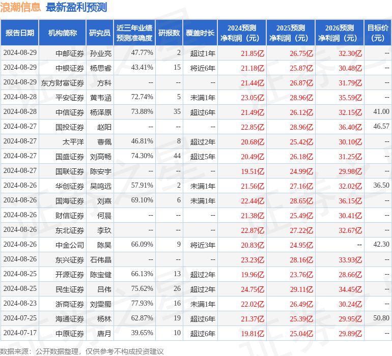 最新盈利預(yù)測(cè)明細(xì)如下: