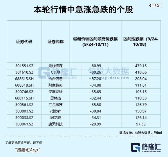 經(jīng)統(tǒng)計(jì),一些在近期行情中漲幅驚人的股票已經(jīng)開(kāi)始大幅回吐,有的相比區(qū)間最高價(jià)甚至快要腰斬。這些先前飆漲的股票很難不引起股民關(guān)注,不知道有多少人不顧風(fēng)險(xiǎn),以很高的持倉(cāng)成本接下了爛攤子,甚至,還加上了杠桿。