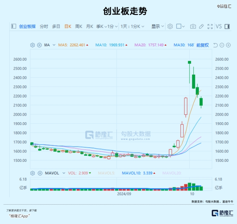 這輪瘋牛行情,創(chuàng)業(yè)板幾天時(shí)間就從1528點(diǎn)直接干到2550點(diǎn),幅度高達(dá)67%,全市場(chǎng)1300多個(gè)股一度市值暴漲50%,顯得極為不真實(shí)。