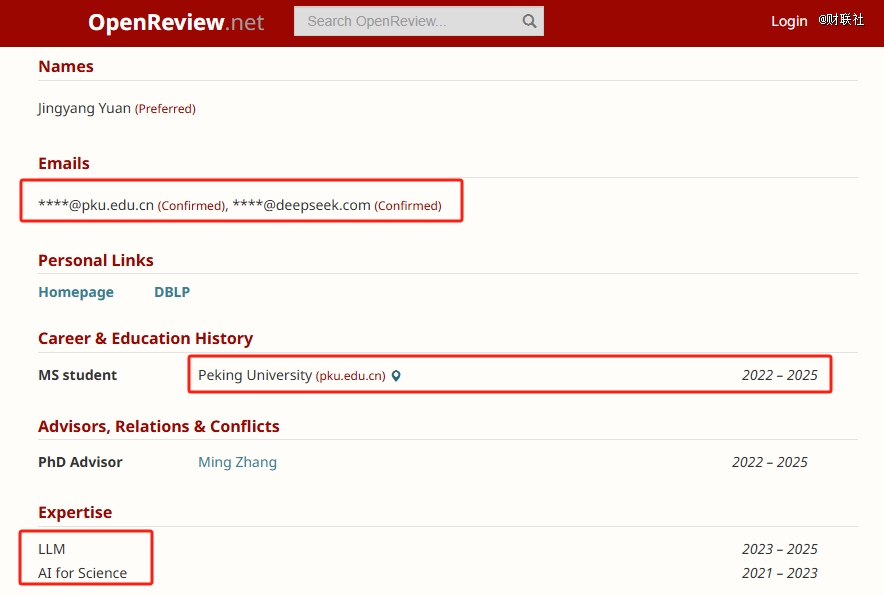 資料顯示,袁景陽(yáng)目前為北京大學(xué)碩士研究生。他的研究領(lǐng)域包括大型語(yǔ)言模型(LLM)、人工智能在科學(xué)中的應(yīng)用(AI for Science)。他是DeepSeek-V3技術(shù)報(bào)告的主要作者之一,還參與了DeepSeek-R1項(xiàng)目,該項(xiàng)目旨在通過(guò)強(qiáng)化學(xué)習(xí)激勵(lì)大型語(yǔ)言模型的推理能力。