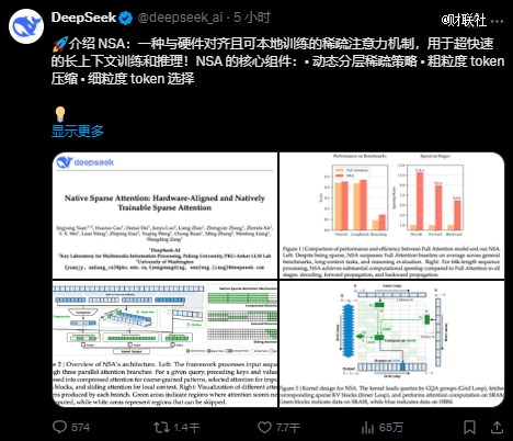 在論文中,DeepSeek團(tuán)隊(duì)表示,隨著大型語(yǔ)言模型的發(fā)展,長(zhǎng)上下文建模變得越來(lái)越重要,但傳統(tǒng)注意力機(jī)制的計(jì)算復(fù)雜度隨著序列長(zhǎng)度的增加而呈平方級(jí)增長(zhǎng),成為制約模型發(fā)展的關(guān)鍵瓶頸。
