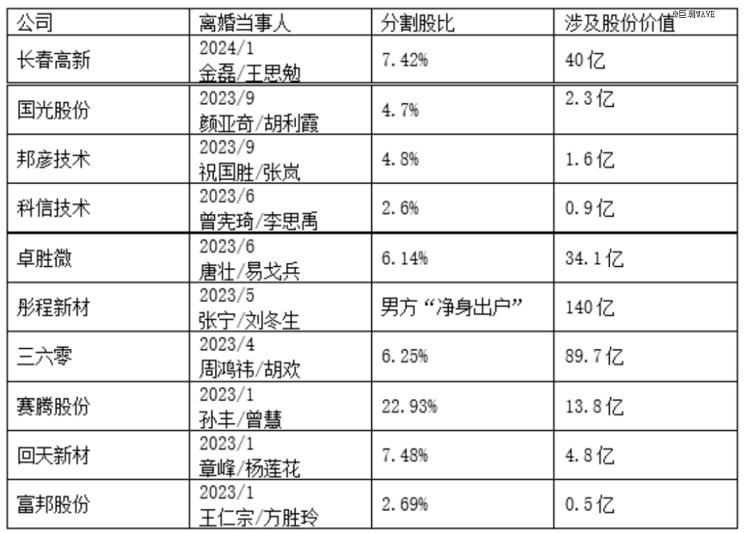 去年以來(lái),上市公司大股東鬧離婚、分割巨額財(cái)產(chǎn)的事情真不算少,有彤程新材這樣公司控制權(quán)直接易主的,有賽騰股份這樣離婚夫妻股份平分、誰(shuí)也不服誰(shuí)的,還有360這樣不影響控制權(quán),但會(huì)影響股價(jià)的。