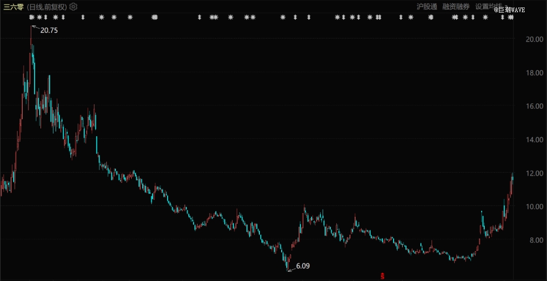 三六零股價(jià)表現(xiàn)(自2023年3月至今)