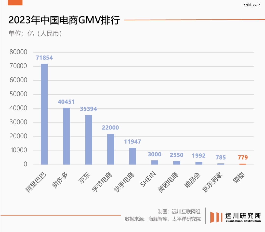 被一群愛潮牌的直男托舉出道后,得物一步步破圈,不僅男女用戶的比例接近1:1,非潮流球鞋類目的占比也過半[11]。2023年達(dá)成779億GMV、2024年接近破億的月活,使其在巨頭包夾的電商紅海也能排上名次。