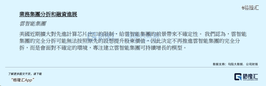 正如財報中所提到的,美國近期擴大對先進計算芯片出口的限制,給云智能集團的前景帶來不確定性。因此,公司保持審慎的態(tài)度,提前研判風(fēng)險并采取相應(yīng)措施,也有助于整體業(yè)務(wù)的穩(wěn)健發(fā)展,同時也反映了公司對投資人、股東負責(zé)對態(tài)度。