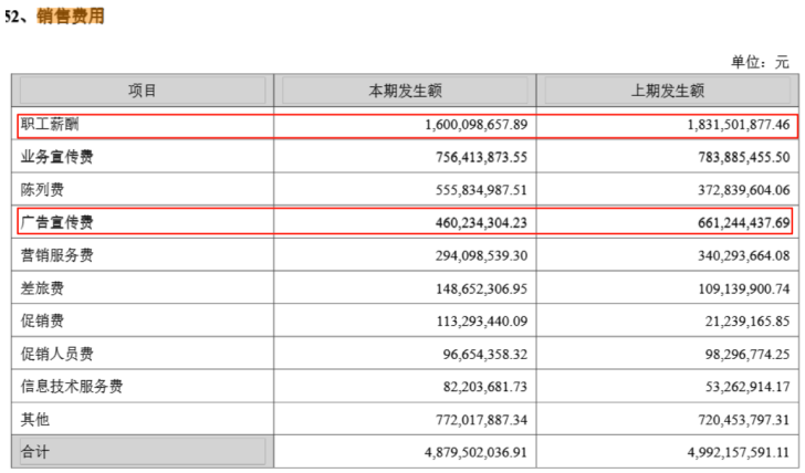 2024年公司銷售費(fèi)用同比減少2.26%,其中廣告宣傳費(fèi)從6.6億元銳減至4.6億元,降幅高達(dá)30%。職工薪酬也從18.32億元降至16億元,降薪成為利潤增長的助推器。