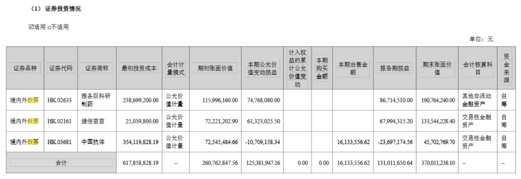 從股票持有情況來看,云南白藥目前分別持有雅各臣科研制藥1.91億元、健倍苗苗1.34億元、中國抗體4570萬元,2024年共計(jì)盈利1.25億元。