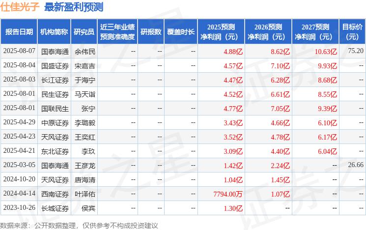 最新盈利預(yù)測明細(xì)如下: