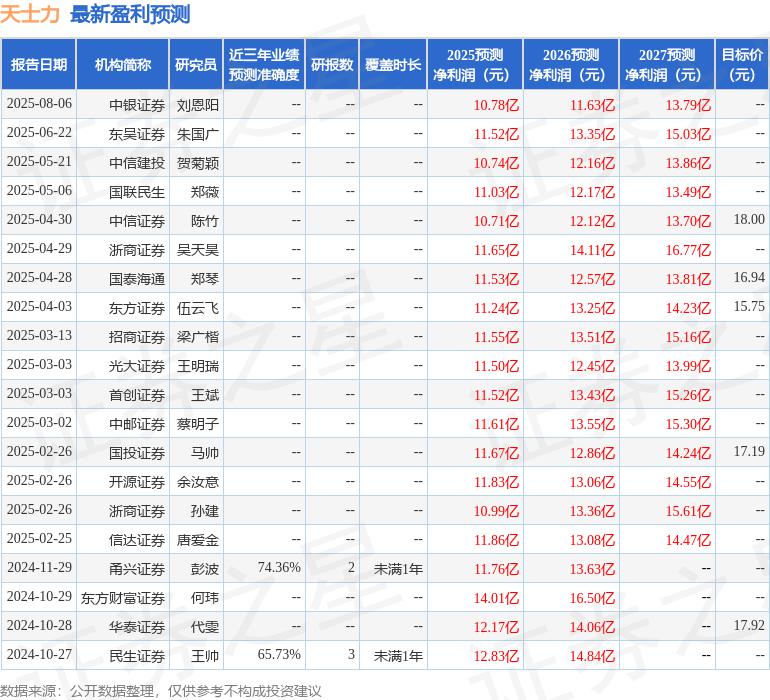 最新盈利預(yù)測(cè)明細(xì)如下: