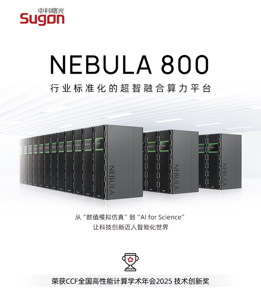 Nebula800專攻智能制造、生命科學、石油勘探、新材料等領域AI4S復雜計算任務場景,以一套系統(tǒng)打通超算、智算技術與生態(tài)壁壘,一平臺支持多精度、混精度計算,破解非融合系統(tǒng)計算精度不全、應用普適性差、異構資源管理調度困難等問題,填補了國內(nèi)相關產(chǎn)品空白。因其突破創(chuàng)新性,Nebula800榮獲2025CCF全國高性能計算學術大會技術創(chuàng)新獎。