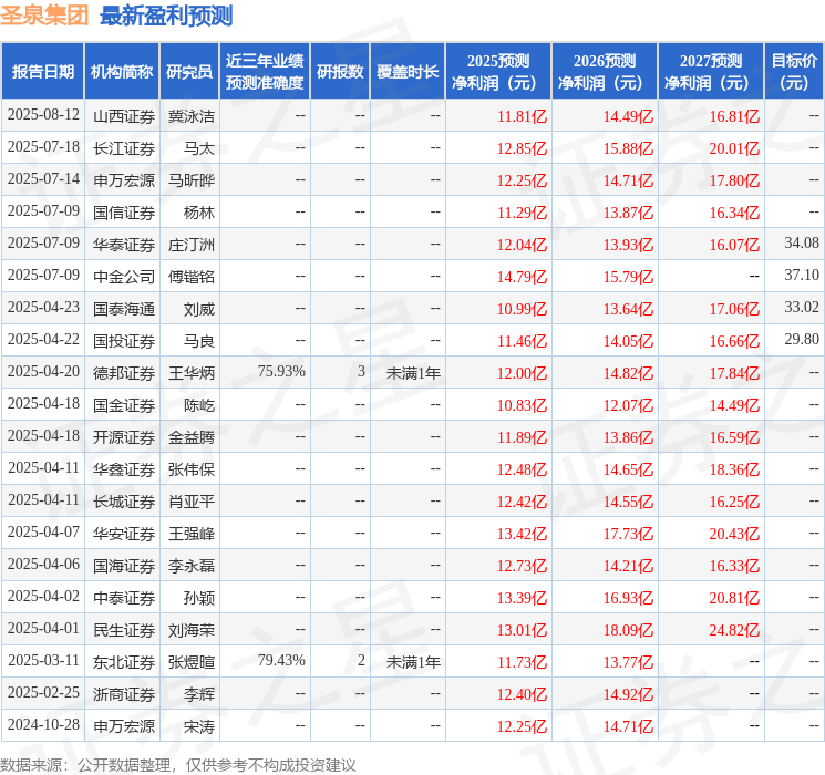 最新盈利預(yù)測(cè)明細(xì)如下: