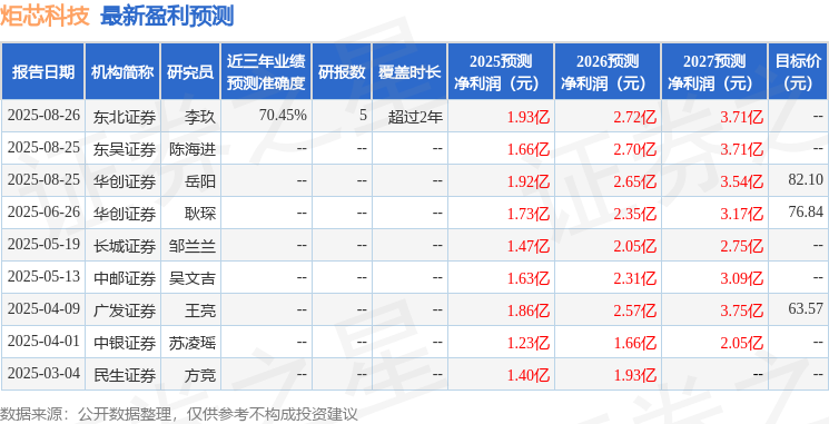 最新盈利預(yù)測(cè)明細(xì)如下: