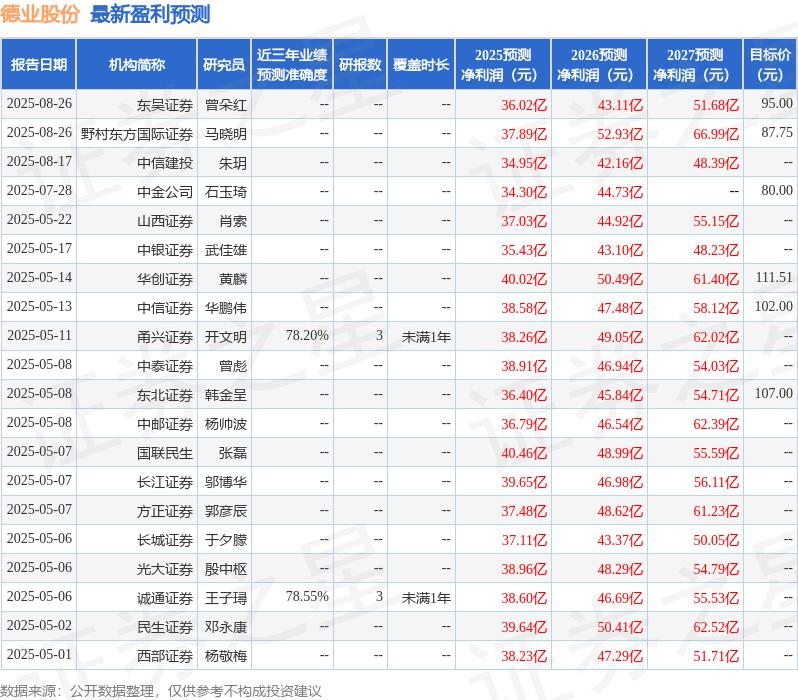 最新盈利預(yù)測(cè)明細(xì)如下: