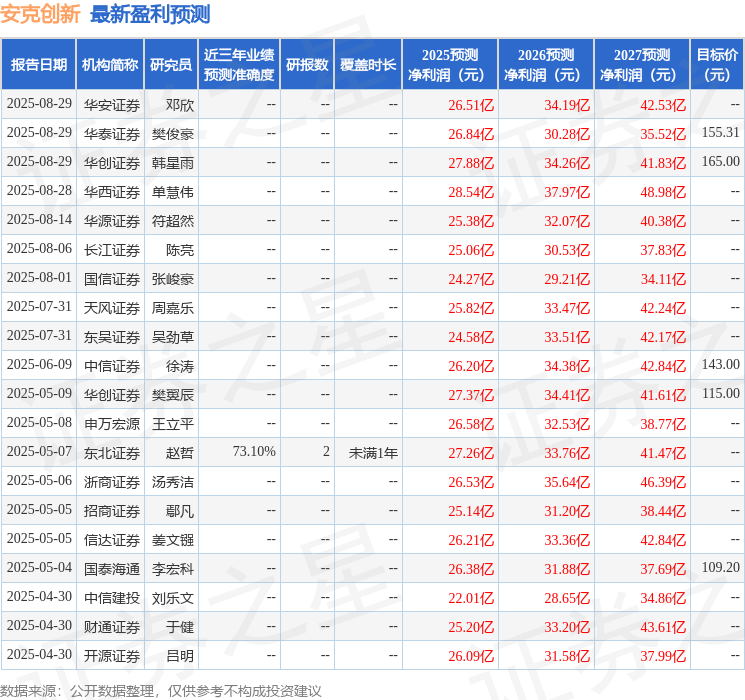 最新盈利預(yù)測(cè)明細(xì)如下: