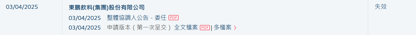 東鵬飲料(605499)(集團(tuán))股份有限公司(簡(jiǎn)稱:東鵬飲料)(605499.SH)于4月3日所遞交的港股招股書滿6個(gè)月,于10月3日失效,遞表時(shí)華泰國(guó)際、摩根士丹利、瑞銀集團(tuán)為聯(lián)席保薦人。