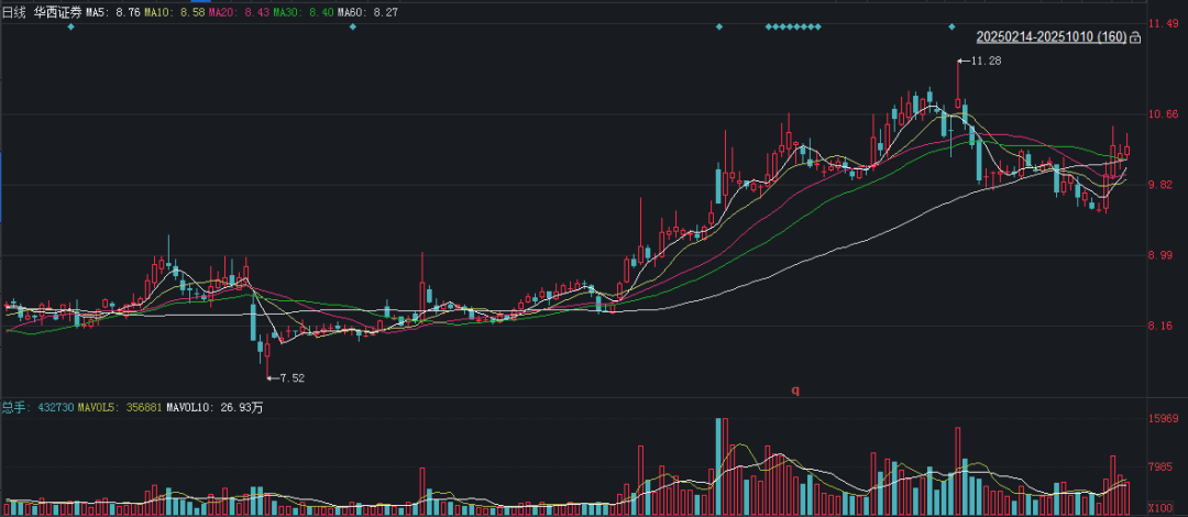 二級市場上,截至10月10日收盤,華西證券上漲0.79%報10.26元/股,最新市值269.33億元,今年來公司股價累計上漲24%。
