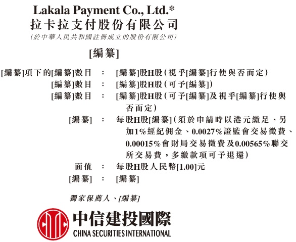 據(jù)港交所10月17日披露,拉卡拉(300773)支付股份有限公司(簡(jiǎn)稱:拉卡拉,300773.SZ)向港交所主板提交上市申請(qǐng)書,中信建投國(guó)際為獨(dú)家保薦人。