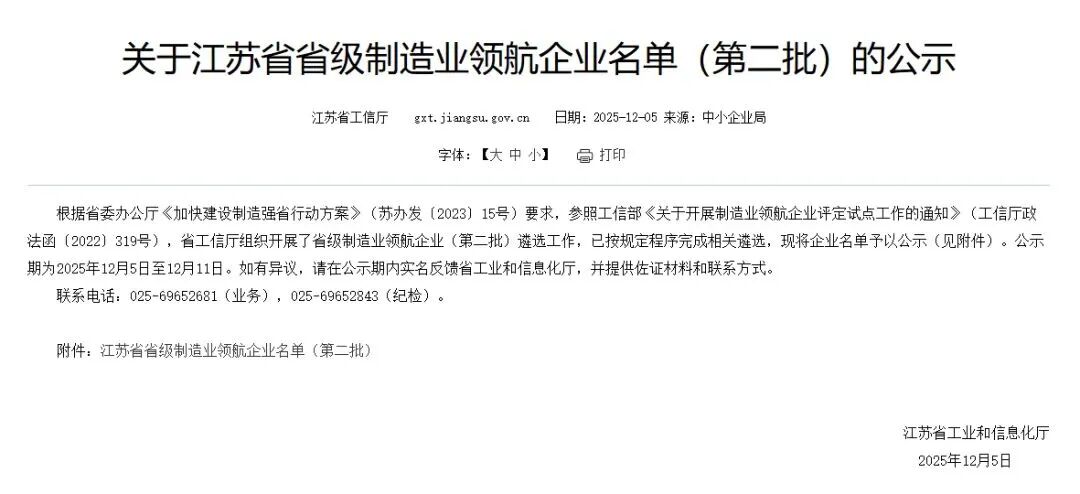 省級制造業(yè)領(lǐng)航企業(yè),是江蘇省構(gòu)建“專精特新—單項冠軍—領(lǐng)航企業(yè)”梯度培育體系中的頂尖層級,入選企業(yè)在技術(shù)、標(biāo)準(zhǔn)、市場等方面擁有強(qiáng)大話語權(quán)與影響力,能夠有效整合產(chǎn)業(yè)鏈,帶動行業(yè)發(fā)展。
